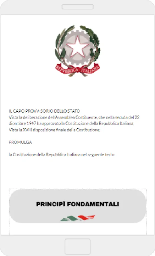The Constitution of the Italian Republic is the fundamental law of the Italian State, which as such occupies the top of the hierarchy of sources in the legal system of the Republic: considered a written, rigid, long, voted, compromise, secular, democratic and basically programmatic constitution. , is made up of 139 articles and 18 transitional and final provisions.
