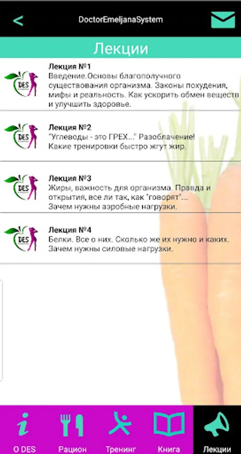 4. LECTURES DES. Four lectures of 40-50 minutes on the most important thing in nutrition and exercise. Designed by Katerina for universal learning in plain language in slides and pictures.