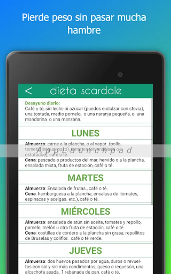 It is recommended that this diet to define, where it is explained how to lose weight, and where tips to lose weight are shown, be accompanied by exercises to lose weight.