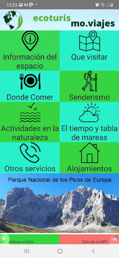 The application claims a friendly user experience. The accessible contents, own and those of third parties, are organized taking natural spaces as a reference center.