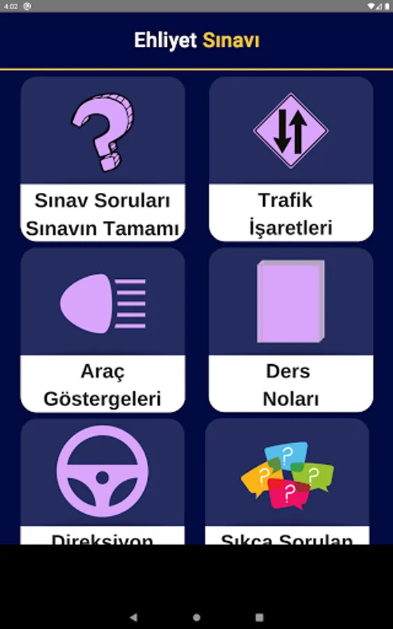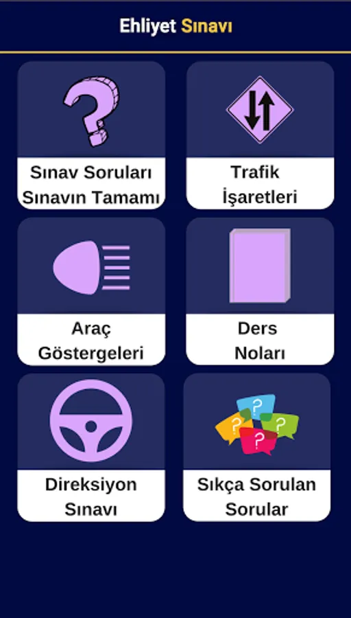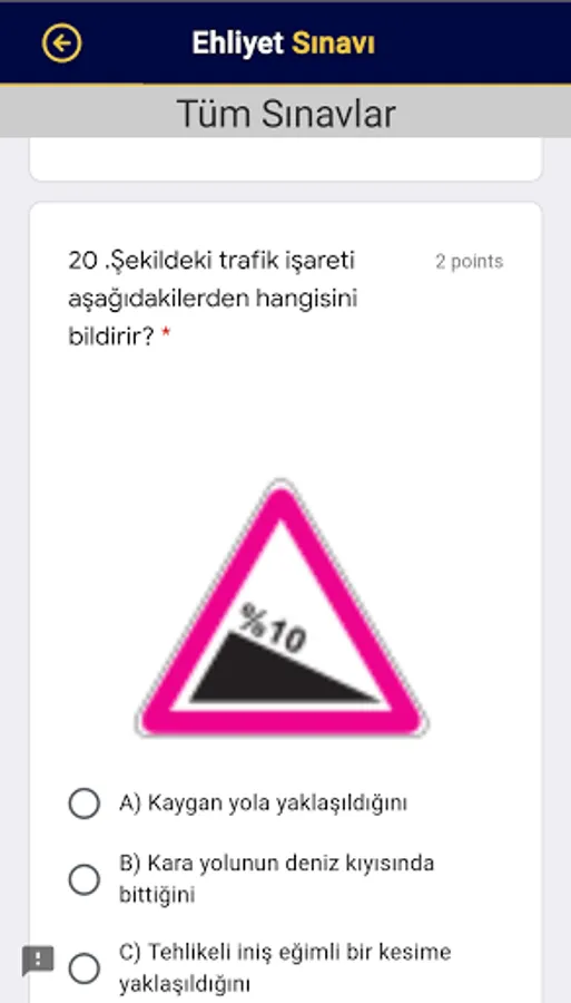 This application that you will decide to install is a guide for you. In the process of obtaining a license, you can prepare for the online exam without having to go to a course. You will get rid of the trouble of looking for notes while preparing for the exam. In practice, besides the questions, traffic, first aid and engine information lecture notes were created. You will be able to prepare for the exam only on your mobile phone without spending such books and stationery.