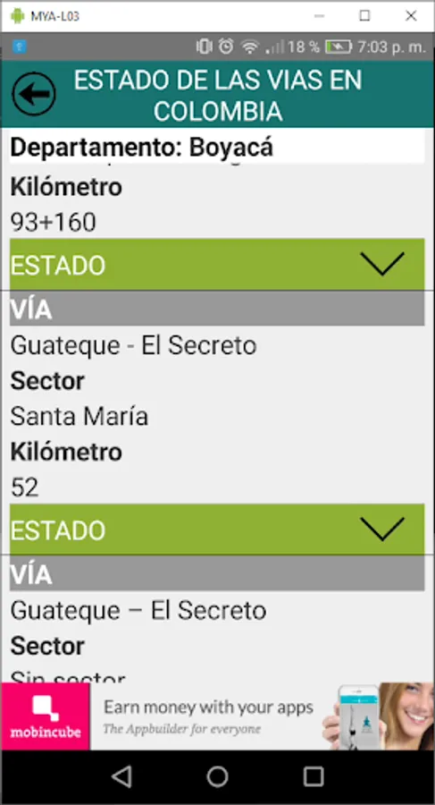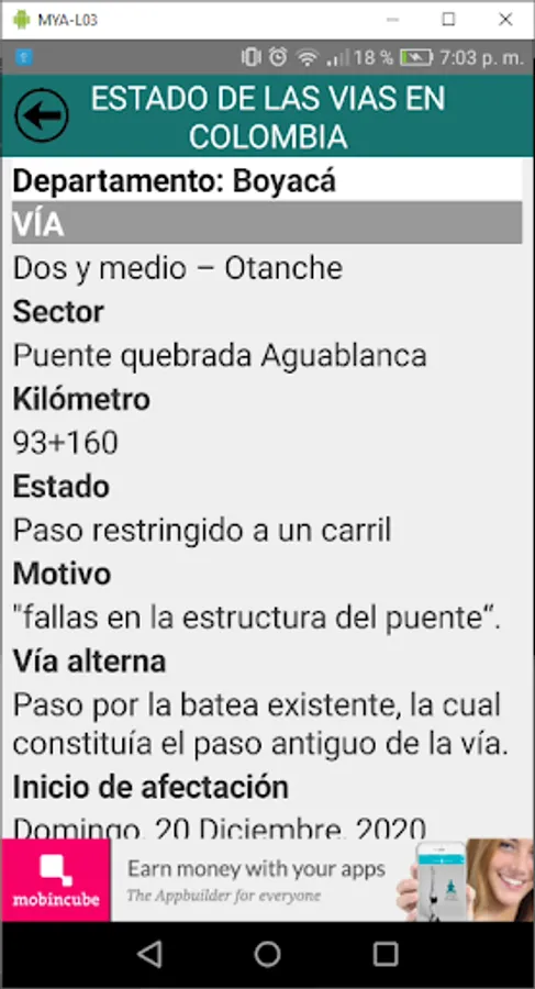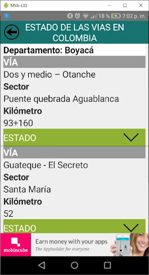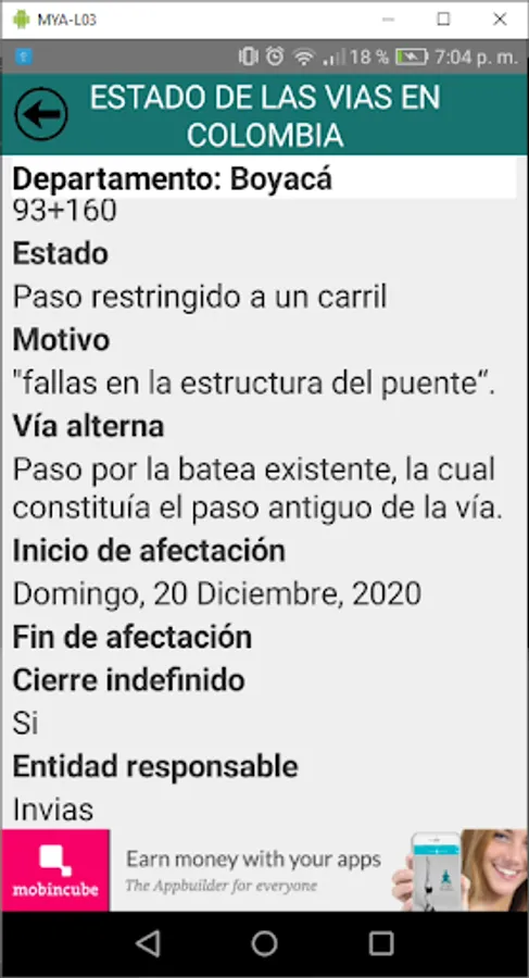 This application allows you to check the state of the roads in Colombia that is published on the website of the National Police of Colombia.