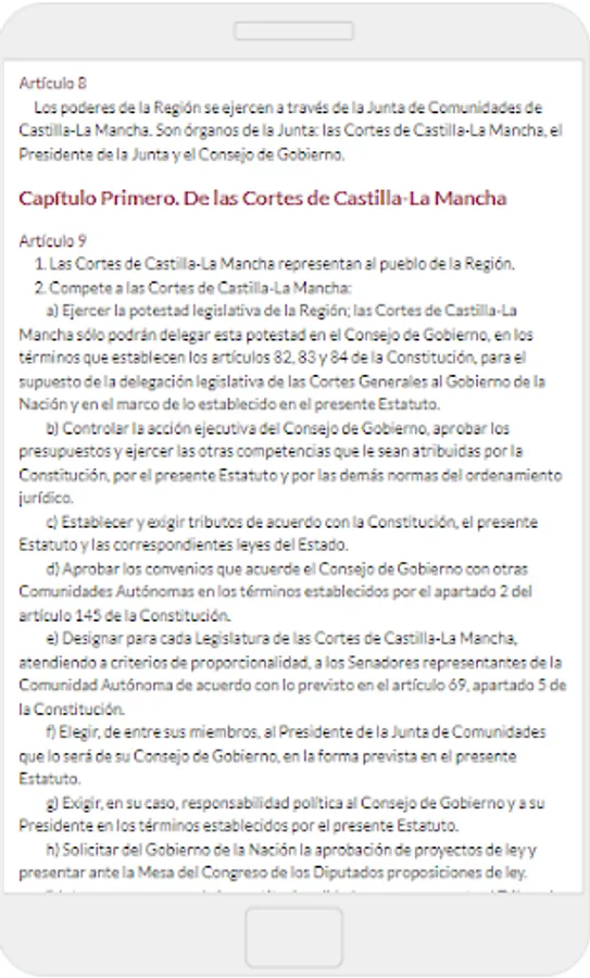 The Statute of Autonomy of Castilla-La Mancha is the basic institutional rule of the autonomous community of Castilla-La Mancha (Spain). The Statute of Autonomy regulates the self-governing bodies of this region, generically called the Junta de Comunidades de Castilla-La Mancha.