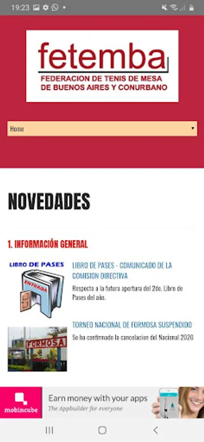 THIS APPLICATION IS FROM THE TABLE TENNIS FEDERATION OF BUENOS AIRES AND CONURBANO