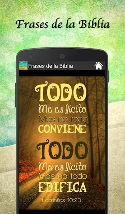 Biblical Phrases is a very easy to use application and its function is fascinating where you can Share your Bible Texts since it contains beautiful Images with Biblical Texts, that will build your life, with verses and topics of all kinds so that you can share with your Family and Friends the Word of God. Download Biblical Phrases Now and Start Sharing Biblical Texts.