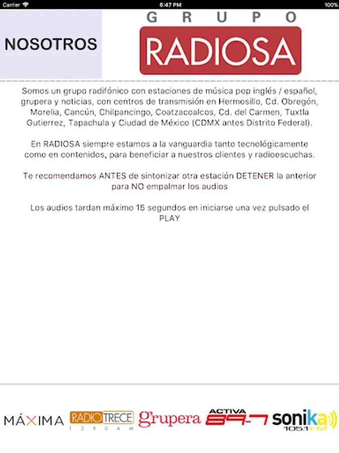 RADIOSA group is an application where you can listen different music formats that cuentamos streaming via:
