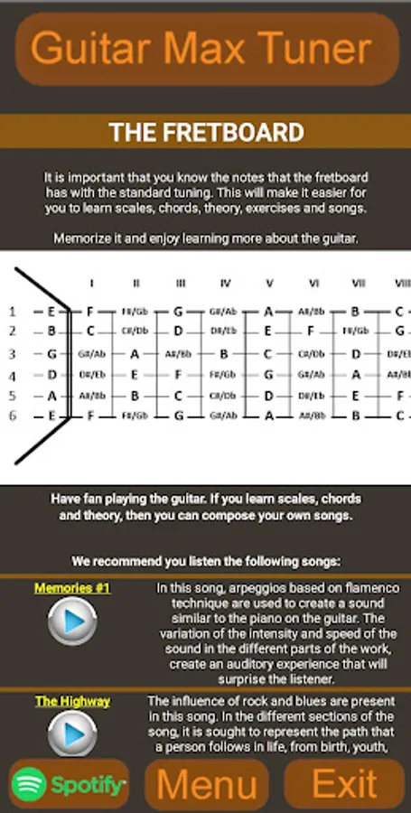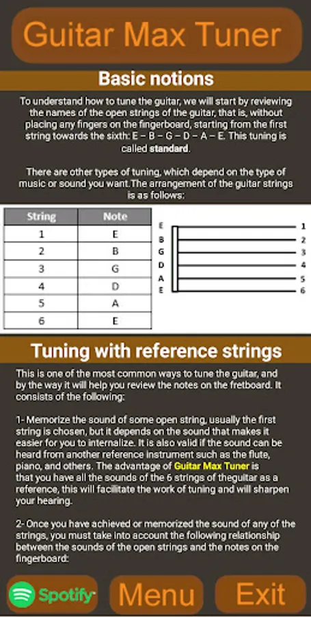 Guitar Max Tuner helps you learn how to tune the guitar. It brings you the sounds of the guitar open strings as a reference so you can use them everywhere. Learn and have fun playing the guitar.