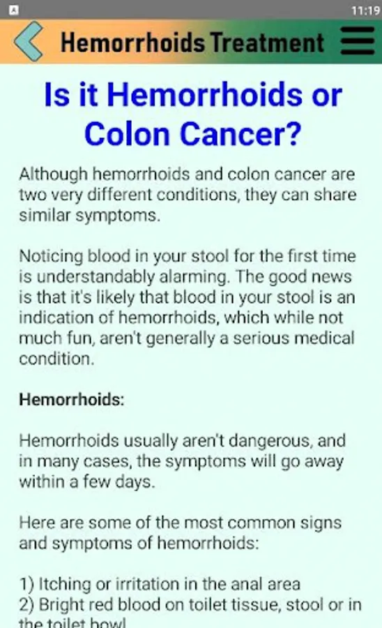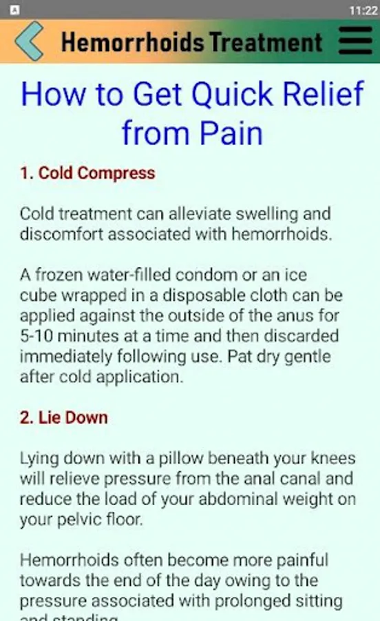 Out app will share all the relevant information on hemorrhoids! From basic info on types of hemorrhoids , causes, symptoms to hemorrhoids prevention methods, we provide a variety of information regarding hemorrhoids treatment and medical surgery offered. With this rich app containing helpful home remedies and relief tips, you can’t go wrong!