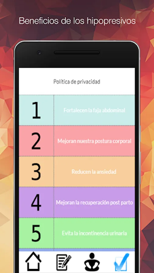 This application is a guide where you will find everything you need to know to be able to correctly perform hypopressive abdominal exercises. By performing this type of abdominal, not only the waist is reduced, but it also provides many benefits for our health. They will help us to mark the waist, work abs and mark a flat abdomen
