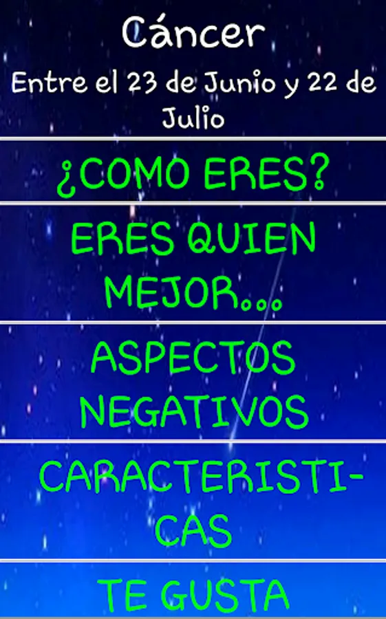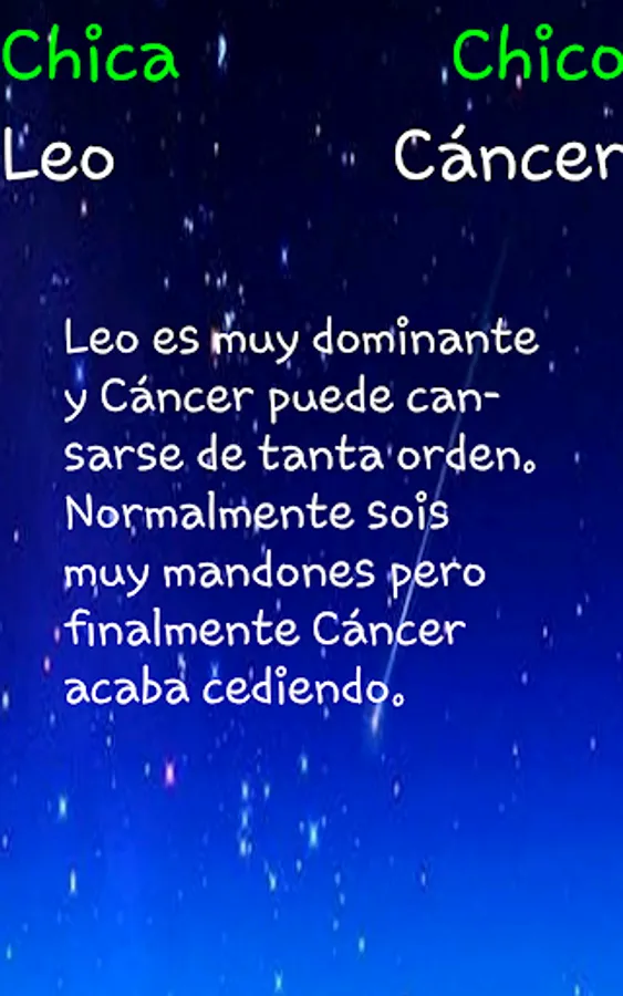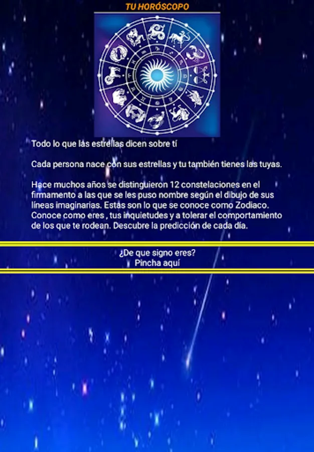 With this complete application you will be able to know the characteristics of each sign of the zodiac, how you are, your hobbies and the degree of compatibility with other signs.