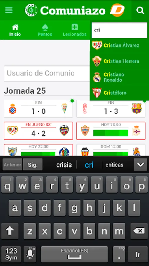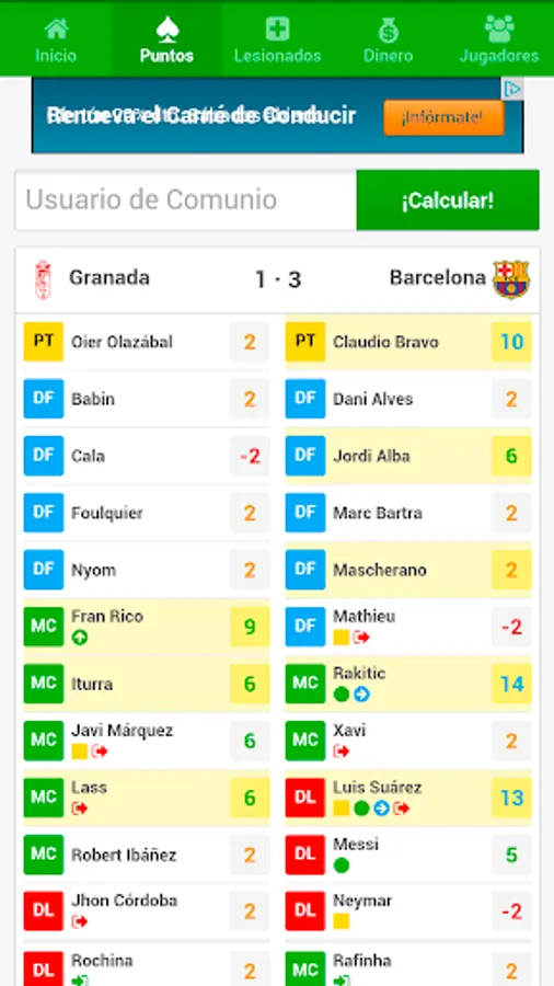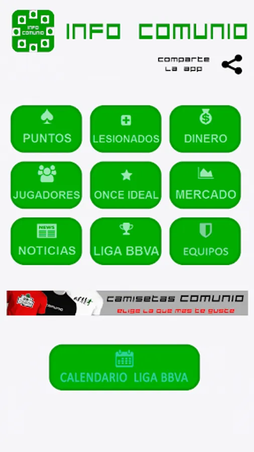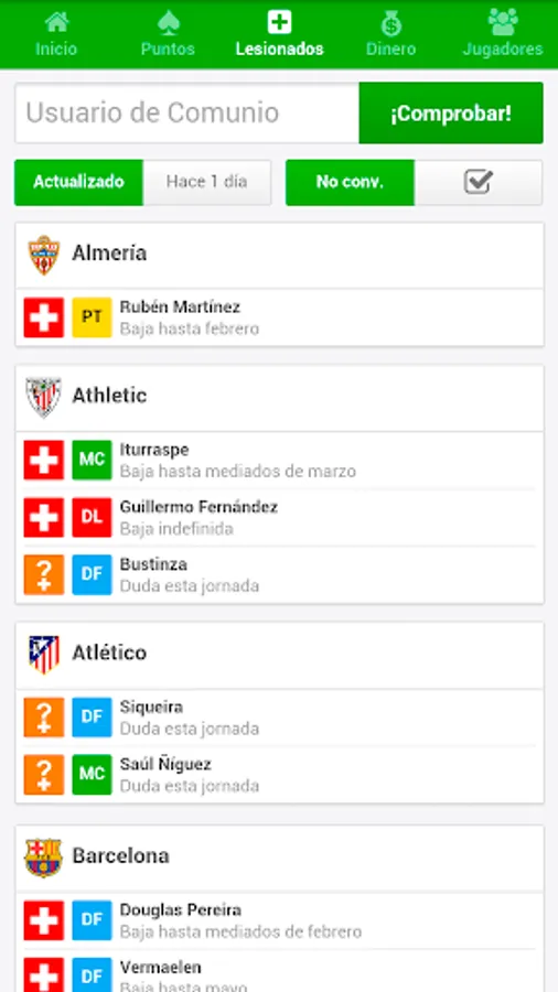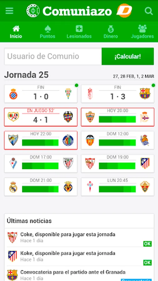 If you want to be informed of everything that happens in the community and that you do not miss even one about injured, summoned and sanctioned of the Spanish first division, days and results of the BBVA league download this app Info Comunio where you will find all the information.