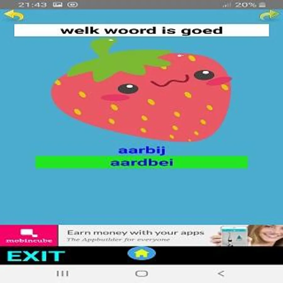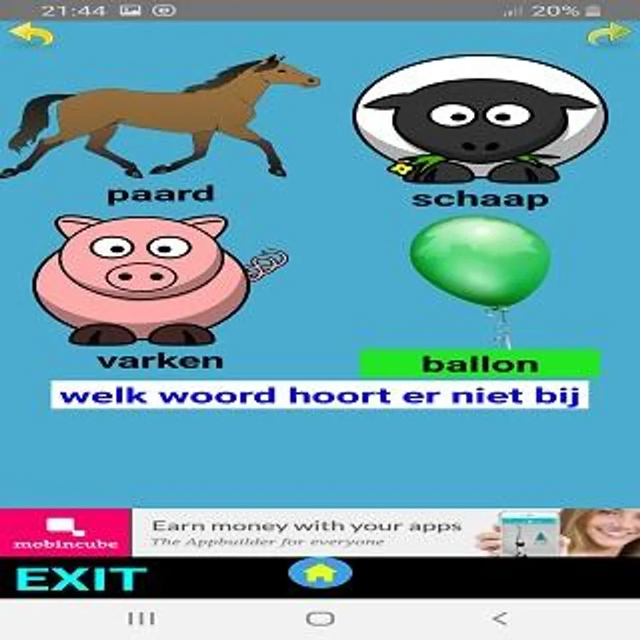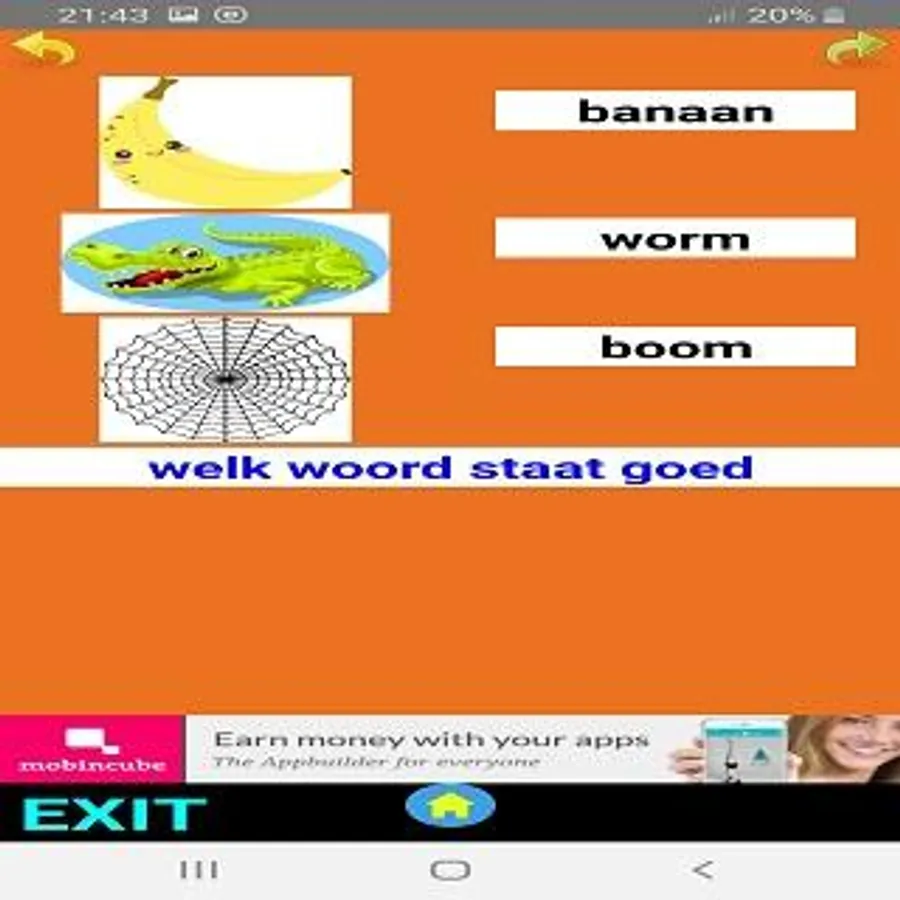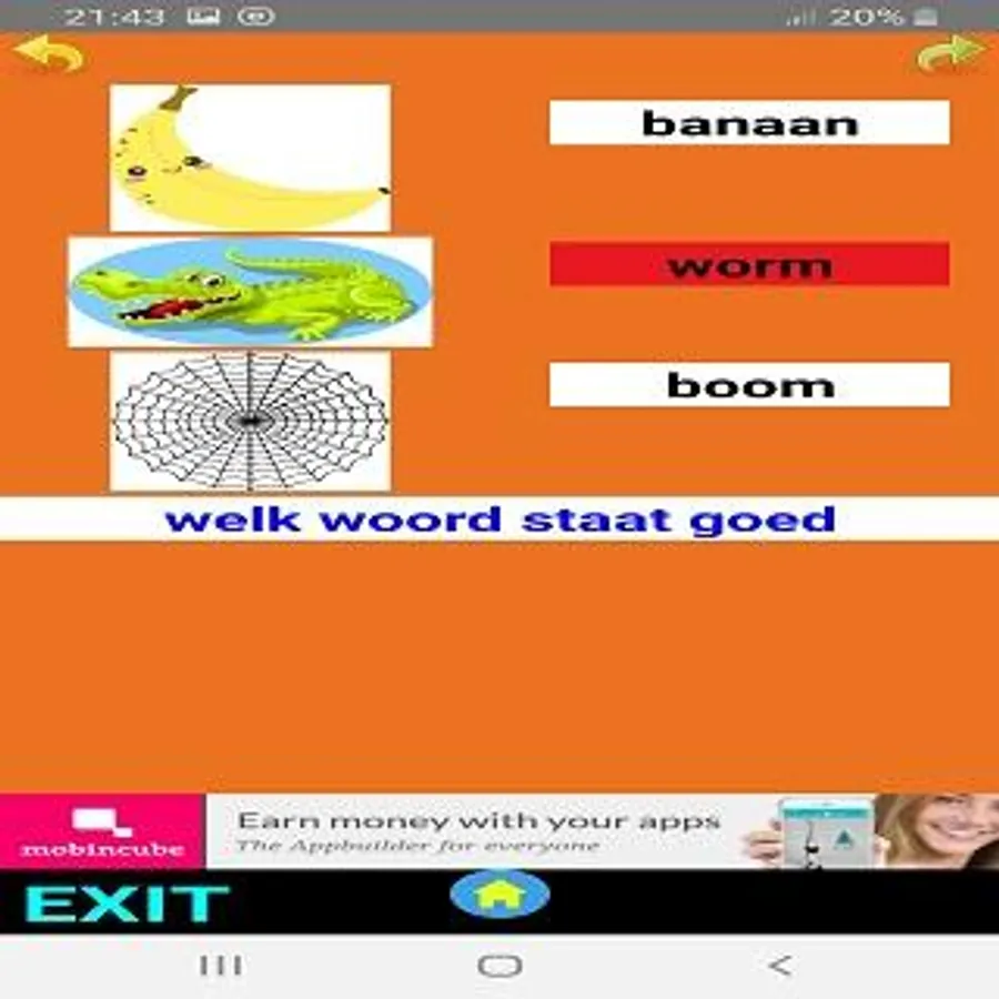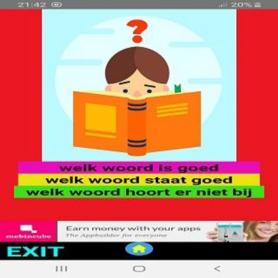 The app consists of a menu with various options for learning to read.