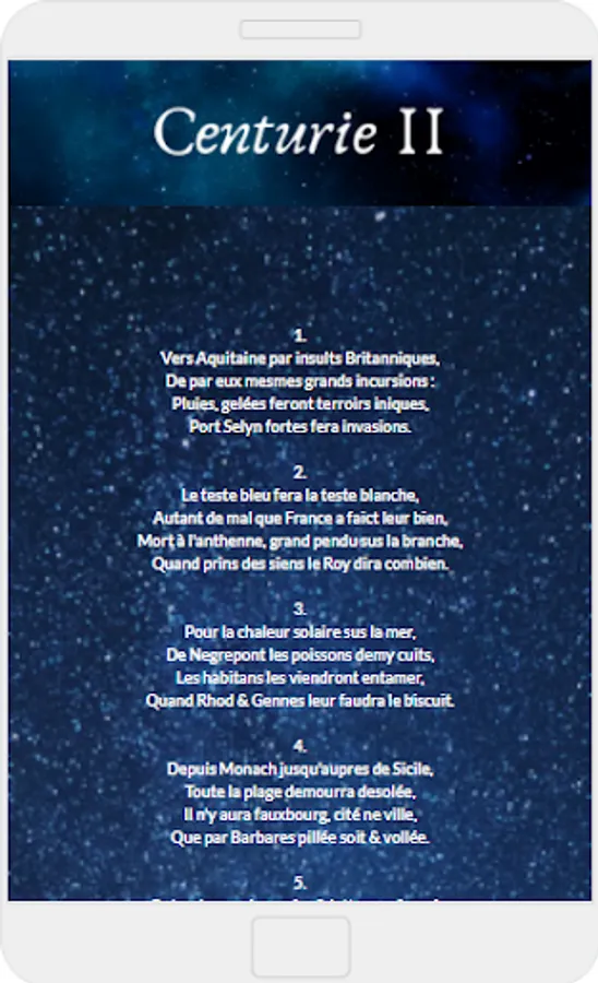 Research suggests that much of his prophetic work paraphrases collections of ancient end-of-the-world prophecies (mainly Bible-based), supplemented with references to historical events and anthologies of omen reports, and then projects those into the future in part with the aid of comparative horoscopy. Hence the many predictions involving ancient figures such as Sulla, Gaius Marius, Nero, and others, as well as his descriptions of "battles in the clouds" and "frogs falling from the sky". Astrology itself is mentioned only twice in Nostradamus's Preface and 41 times in the Centuries themselves, but more frequently in his dedicatory Letter to King Henry II. In the last quatrain of his sixth century he specifically attacks astrologers.