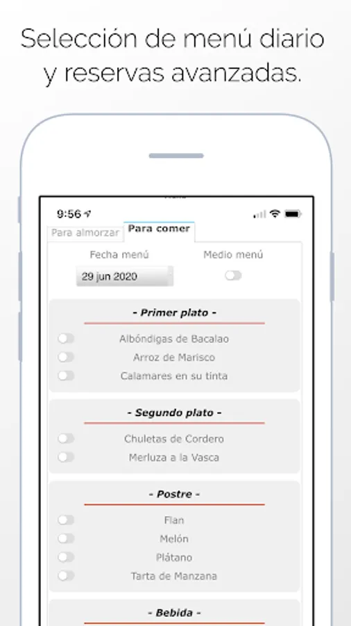 -Access to reservation between several dishes of each of the meals in your center for the elderly or residences.