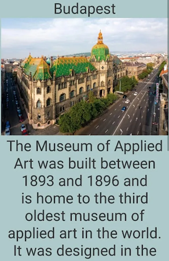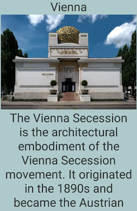 The Art Nouveau style is a global trend in the art of the XIX century.Modernist artists have developed an entirely new style as a reaction to academic art. This style was inspired by Mother Nature herself and first appeared in decorative elements at the very beginning of the 1890s.This style is used in many countries.The application tells about different countries in which there are buildings in this style.