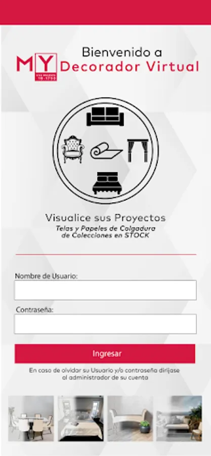 An App created to make simulations with the references of fabrics and wallpapers that we have available. You can also make inventory inquiries, bearing in mind that these are updated every 30 minutes.