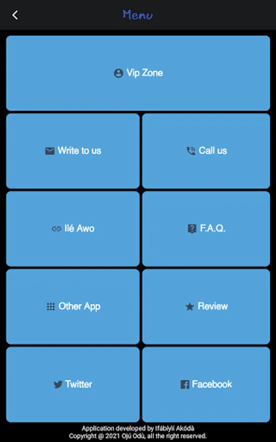 • Exclusive "Vip Zone" where you can receive the information previously requested from Ifábíyìí Akódà with the possibility of personalizing the profile