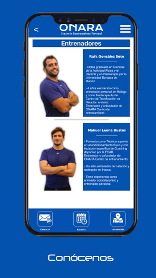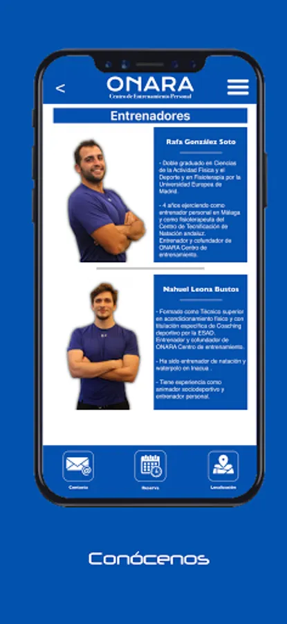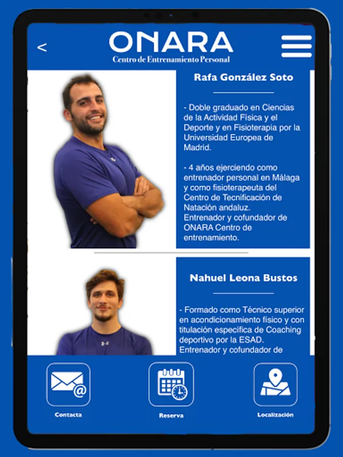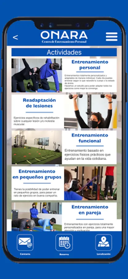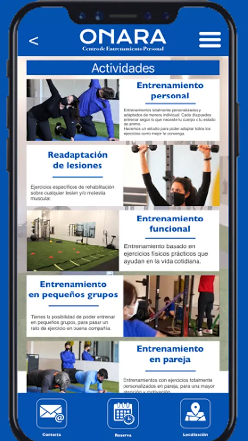 This is an app about ONARA Training Center. In this app you can find all kinds of information to start exercising with your personal trainers. From an individual class, in pairs or in a small group, you can get in shape in a personalized way.