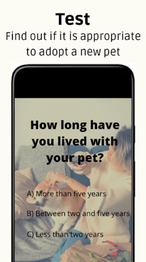 Test section to find out if it is convenient to adopt a new pet.