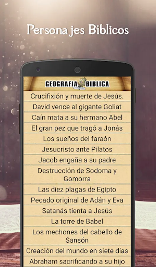 Brief biographies of the most prominent characters in the Bible, a complete compendium from A to Z and the possibility of sharing these texts for your favorite social networks, Facebook, WhatsApp, email, etc. A walk through the Bible looking for the highlights, very easy to find characters.