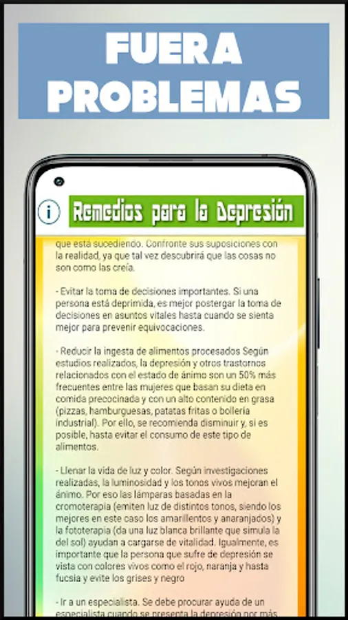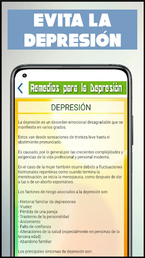 Depression can be described as feeling sad, blue, unhappy, downcast, or down. Most of us feel this way from time to time for short periods. Learn everything about depression and especially how to avoid it with this application.