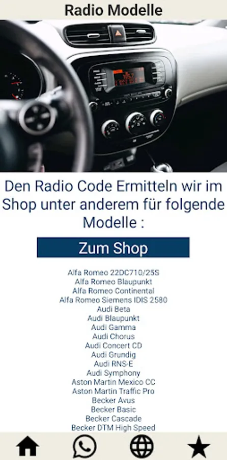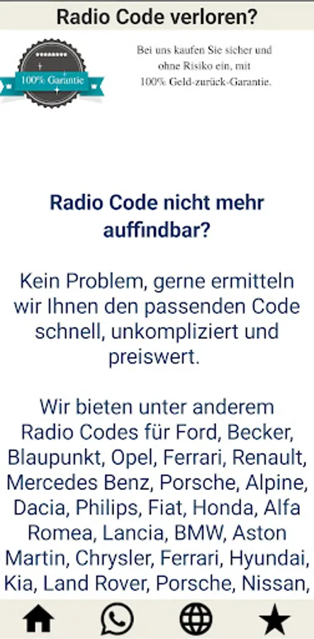 We offer radio codes for models such as Alfa Romeo, Audi, Becker, Blaupunkt, BMW, Chrysler, Dacia, Dodge, Fiat, Ford, Grundig, Honda, Hyundai, Jeep, Lancia, Land Rover, Mercedes, Nissan, Opel, Panasonic , Philips, Renault, Seat, Skoda, Suzuki, Volvo and VW.
