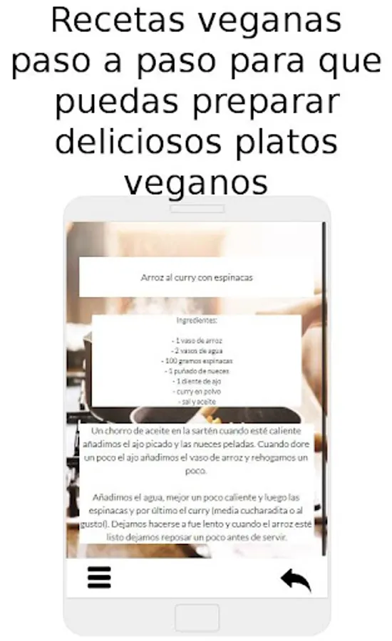 Easy vegan recipes is intended to be a practical, simple and, above all, useful application. Within everyone's reach and with easy preparations for all audiences.