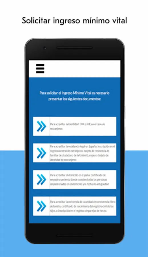This compilation is not the official application. Contains information on how to request the Minimum Vital Income. The Minimum Vital Income (IMV) is a non-contributory Social Security benefit that guarantees a minimum income to those who lack it.