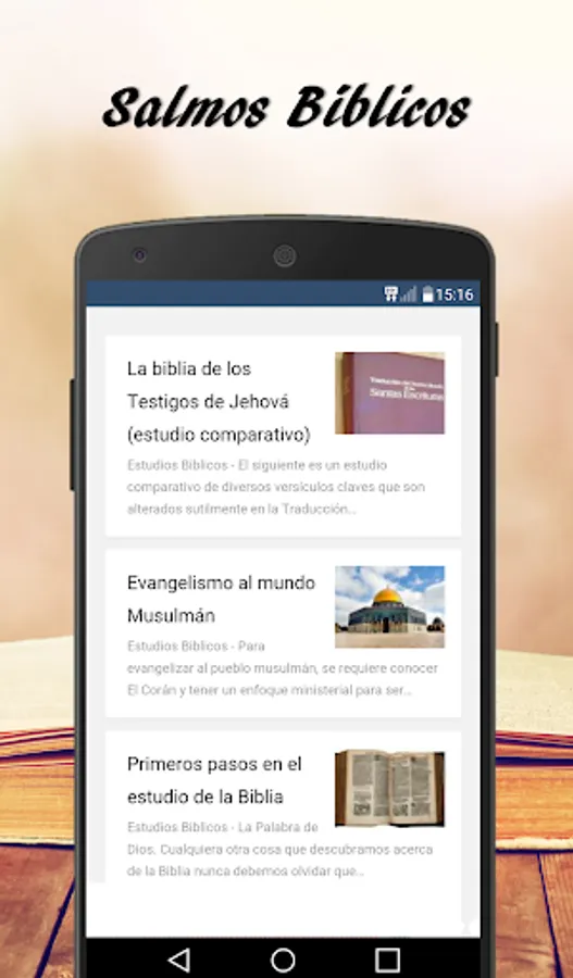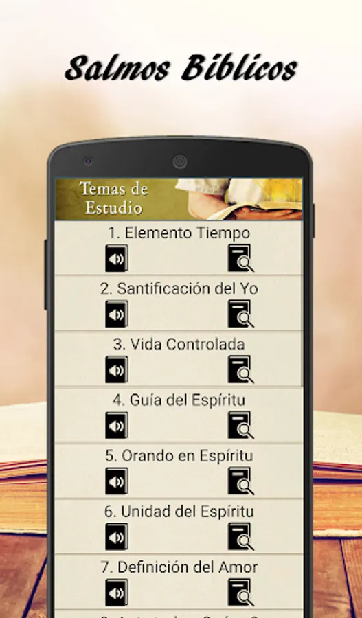 The Biblical Psalms application contains all 150 Psalms of the Bible, in 3 different versions arranged in a small application, fast and easy to use and with the possibility of listening to them.