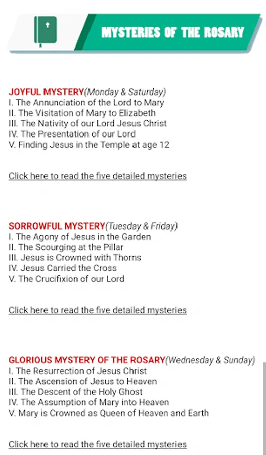 Do you want to feel close to the love of GOD and the strength of the Virgin Mary? Dedicate 30 minutes a day to meditate and discover the different mysteries of the Lord, enumerated and narrated by this app so that praying the Holy Rosary is enjoyable and helps you to disconnect.