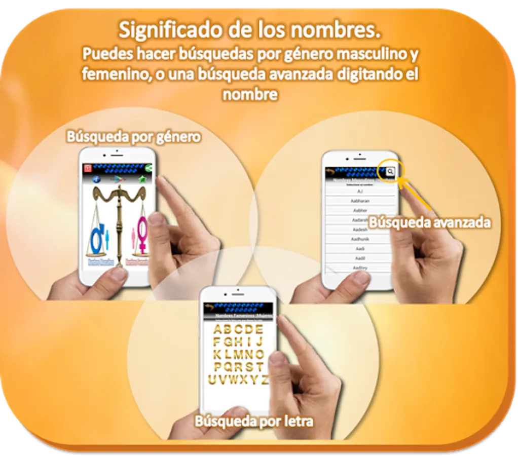 In the long list of names offered by this application, you can search by genre, either in the section of male (male) or in the female section (female), you also have the option to do an advanced search by typing the name or part it and the list will appear.