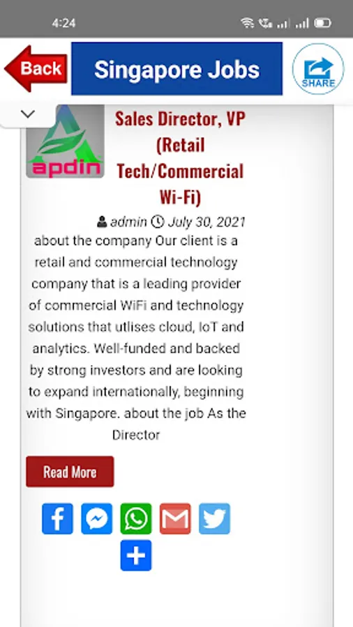 Singapore Jobs is a free android app to find new jobs from Singapore and other countries. Daily adding new jobs from all over Singapore. No signup or Registration required to apply jobs. Just attach CV and apply each jobs.