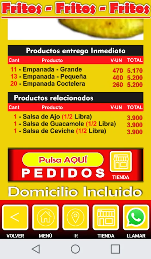 * Sauces: (Garlic - Guacamole - Ceviche)