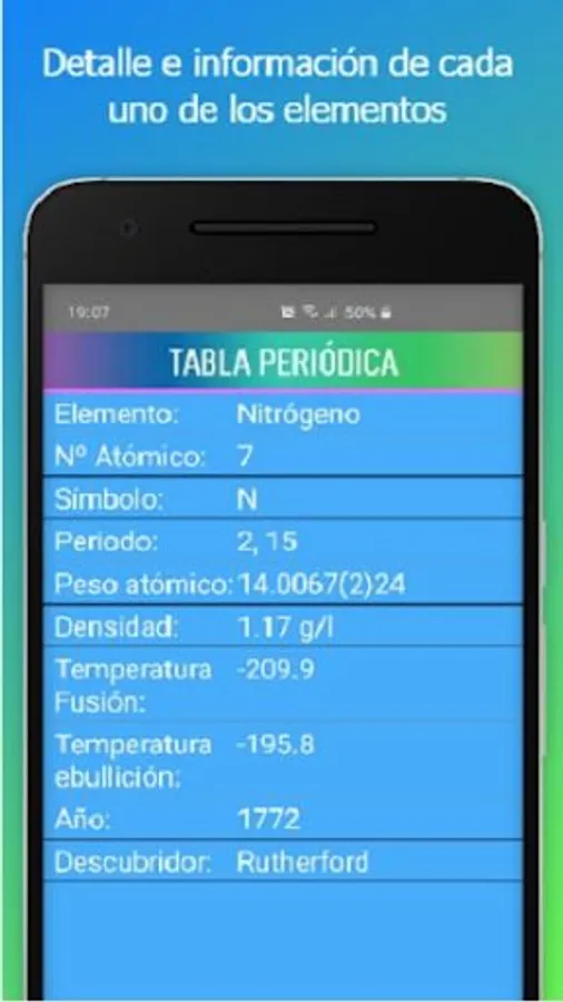 In addition to the image of a periodic table from where you can review the elements, you can see a list of each of them.