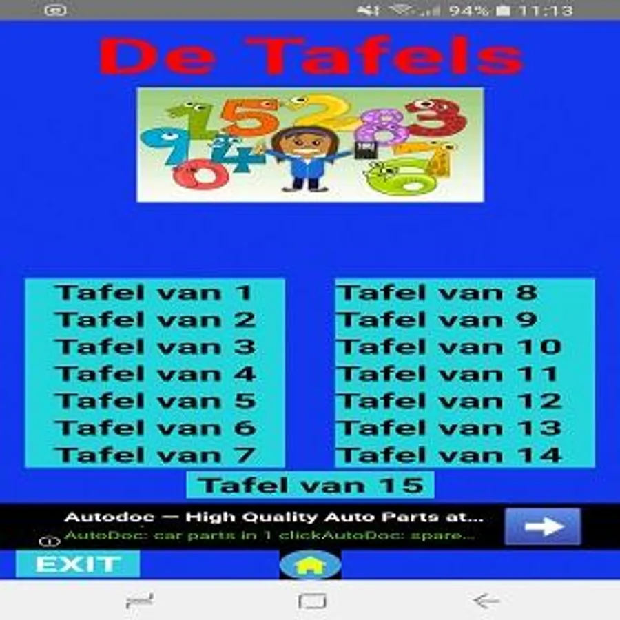 The app consists of a menu from which you can choose from table 1 up to and including 15.