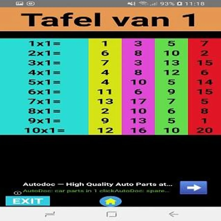 When you have made the choice in the menu which table you will practice, you can get started.