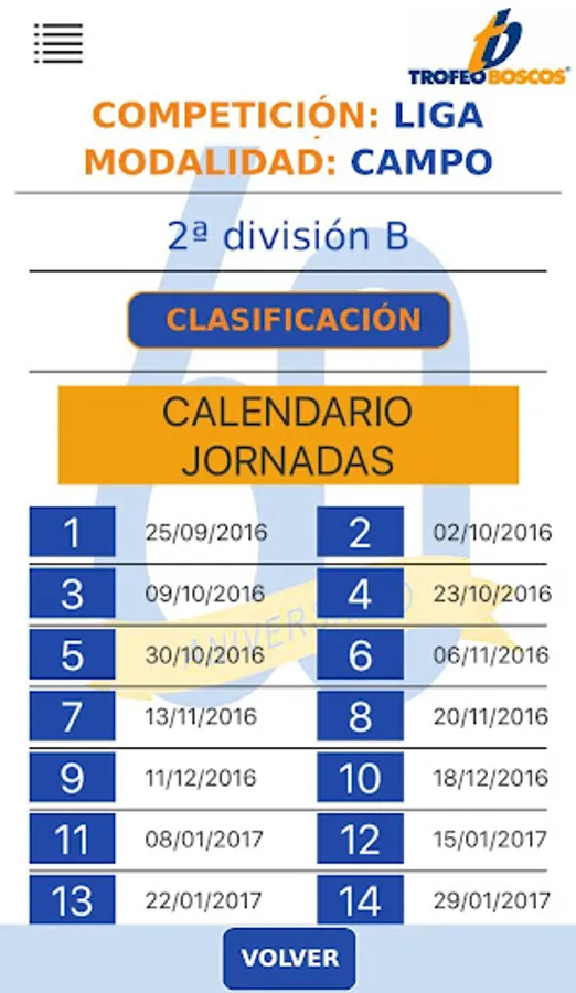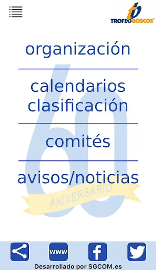 Trofeo Boscos application consists of the following sections: