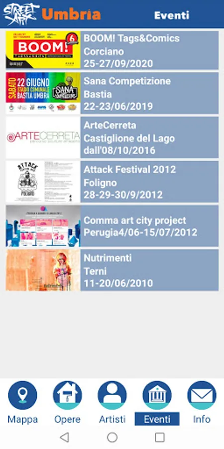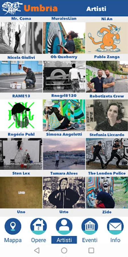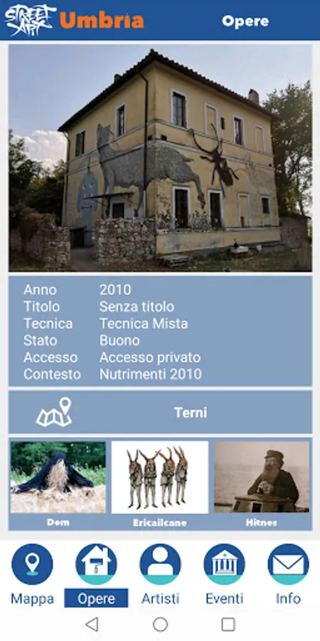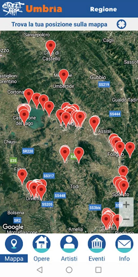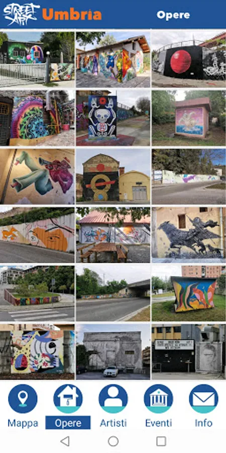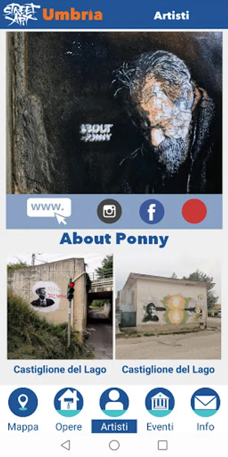 Street Art Umbria aims to physically bring the user in the presence of the works, through an accurate geo localization work, performed by visiting all the places on the platform and photographing the live works.