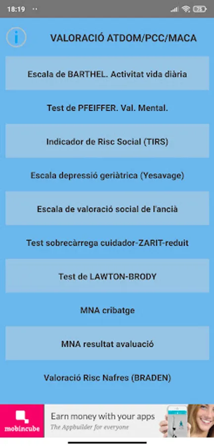 TESTs patient assessment home care, Barthel, Pfeiffer, Social Risk, Yesavage, Social Assessment of the Elderly, Reduced Zarit, Lawton -Brody, MNA, Braden