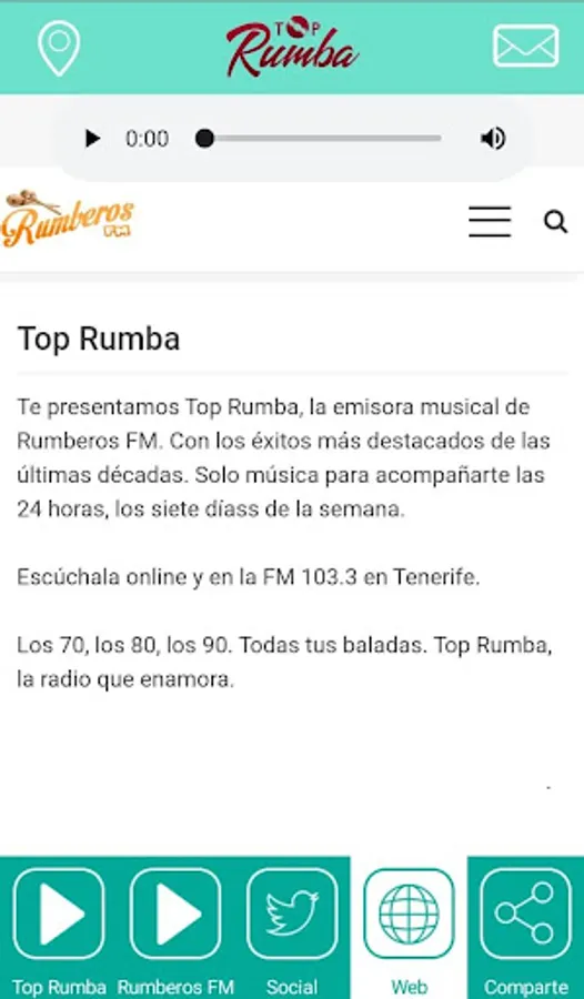 We present Top Rumba, the music station of Rumberos FM. With the most outstanding successes of the last decades. Only music to accompany you 24 hours, seven days a week.