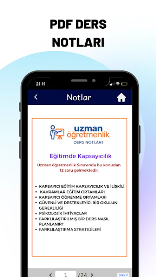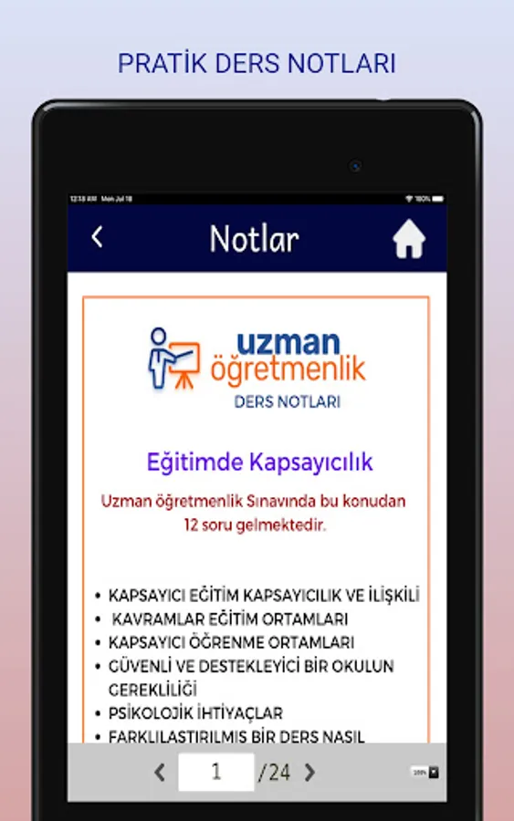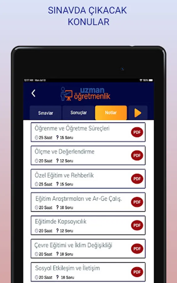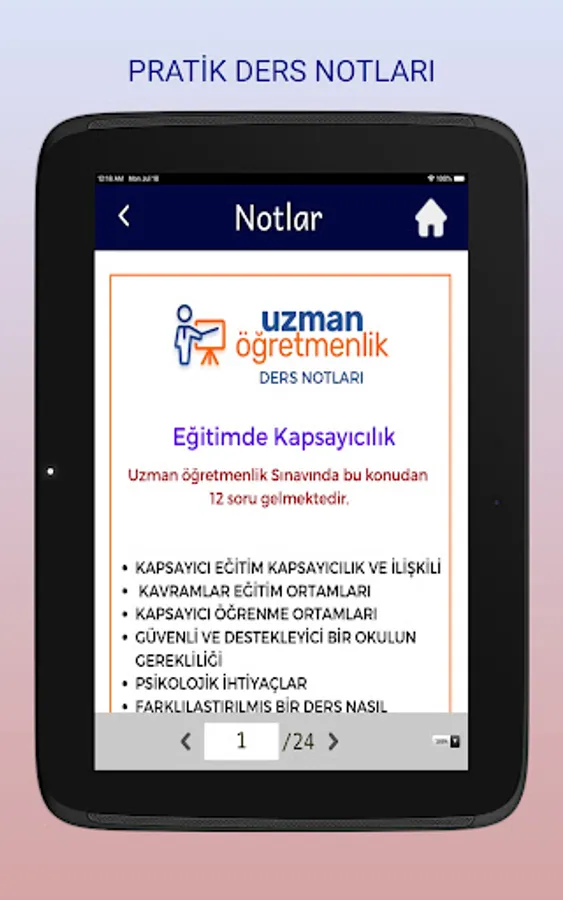In the Expert Teaching application, original PDF lectures were added page by page. You can open the lectures without internet. The topics have been prepared according to the course contents published by the ministry.