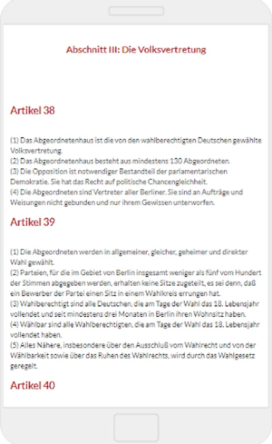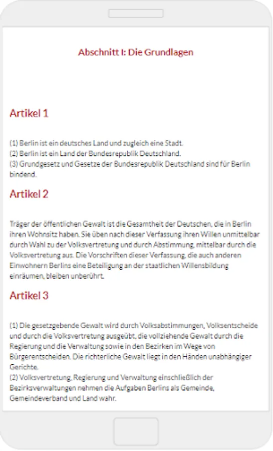 Current is the constitution of November 23, 1995, which was passed by the Berlin House of Representatives on June 8, 1995 and approved by a majority of the Berliners in the referendum on October 22, 1995, with the following changes (see the info box with the basic data)