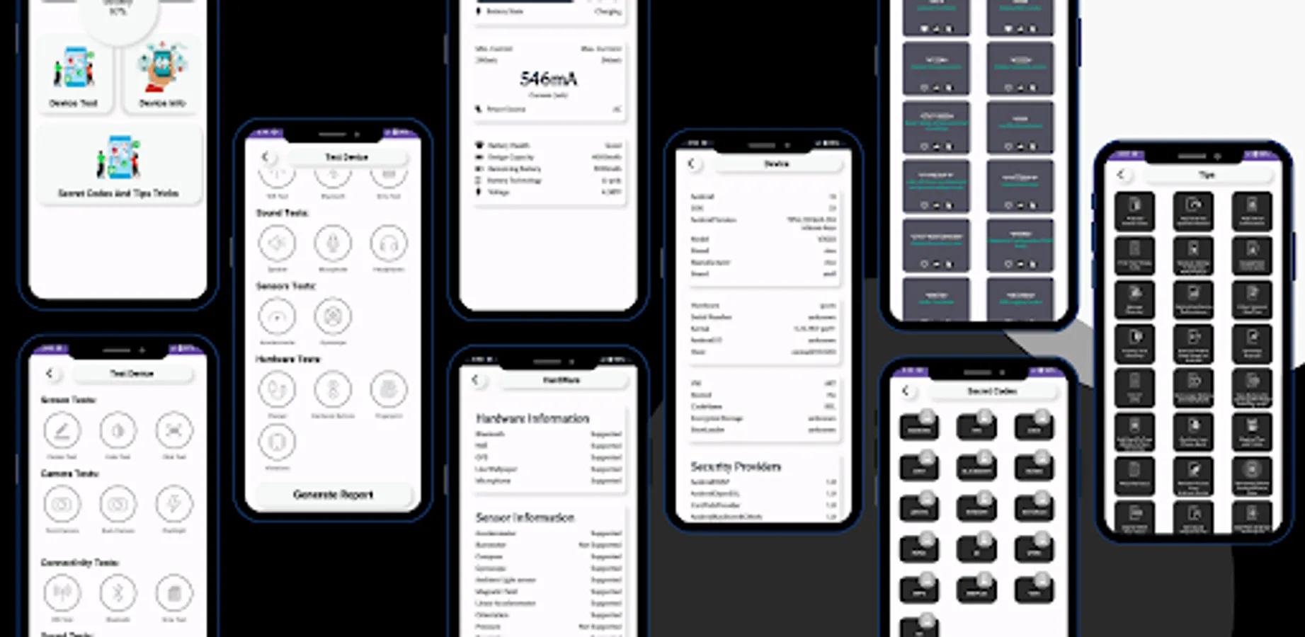 Our app offers a plethora of testing capabilities, allowing you to scrutinize every aspect of a mobile phone's performance. Run screen tests to check for imperfections, assess the flashlight's functionality, and ensure call quality is top-notch. Validate the microphone and speaker, confirm vibration and headphone functionality, and conduct in-depth camera inspections. Don't forget to shake things up with our shake test and scrutinize mobile sensors for precision.