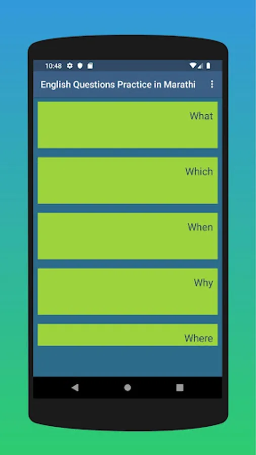 English Questions Practice in Marathi is application where user can learn the various type of English questions and practice them.