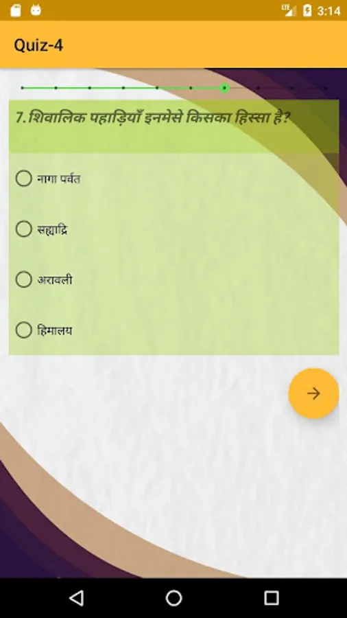 Indian Mountains quiz in Hindi application has multiple choice questions on Indian Mountains. Mountain quiz in Hindi application consists of different mountains in India such as the Himalayas, Oldest mountain range Aravali, West and Eastern Mountain Ranges, their rivers, highest points and hill stations located on those mountains.