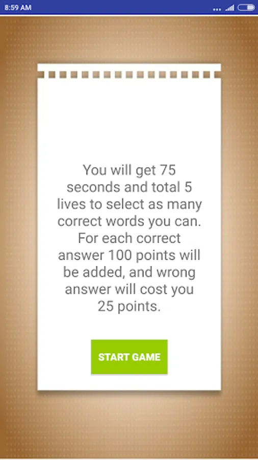 You have total 75 seconds to complete each game and for each game you will get total 5 lives. Each wrong answer will cost you one life.