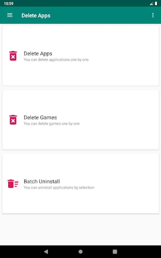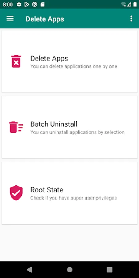 Delete Apps is a tool to remove apps for android phones. It is super easy to use, you can select multiple apps that you want to uninstall, and click "Delete" button to uninstall them.