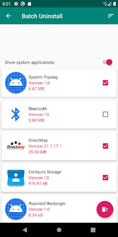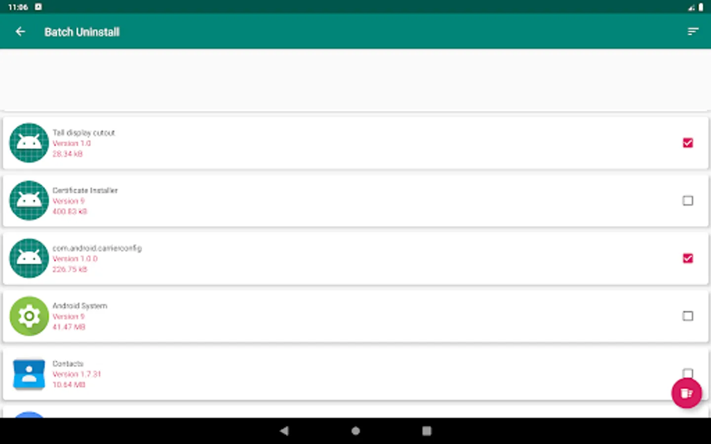 Check the apps that you want to uninstall, then tap the uninstall button.