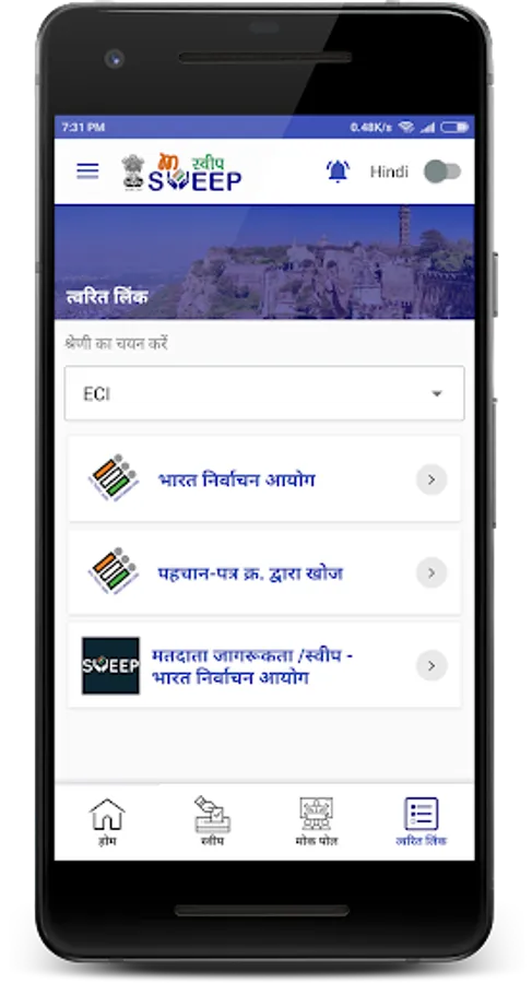 कृपया एप डाउनलोड कर मतदान में अपनी भागीदारी सुनिश्चित कर भारत के लोकतंत्र को और मजबूत करने में सहयोग कीजिए।