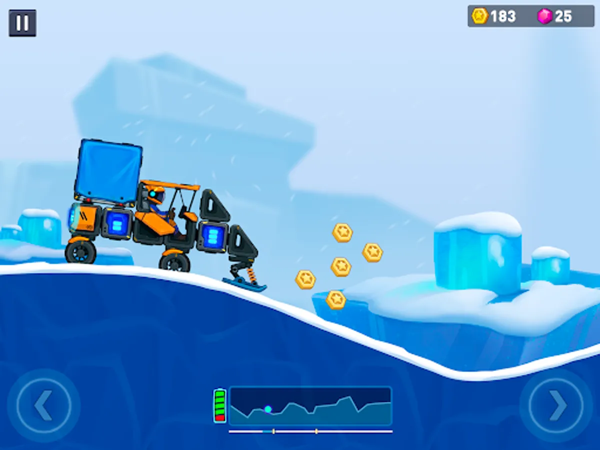 Equip your vehicle with engines, reactors, and super wheels. Tune for maximum speed. Think up the construction so it would get over any off road, acid puddle, or mud. Keep in mind the rover weight matter! Read in-game advice carefully. Experience extreme driving. Drive carefully along smashy road. Watch the battery level, vehicle, and unit safety. Plan every action wisely in online racing games. Use all possible driver and hill climb skills!